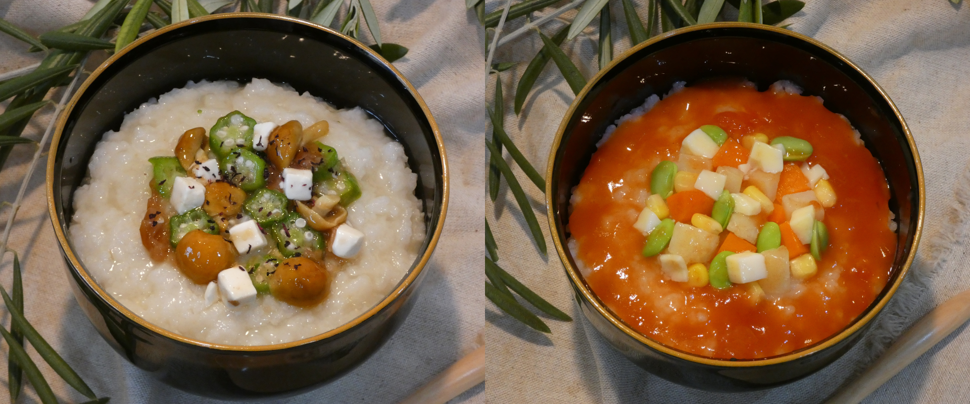 介護の現場で働くスタッフの声をもとに、栄養満点で食べやすいお粥とおかずを一つの器にまとめた「ワンボウル食」をご用意しています。